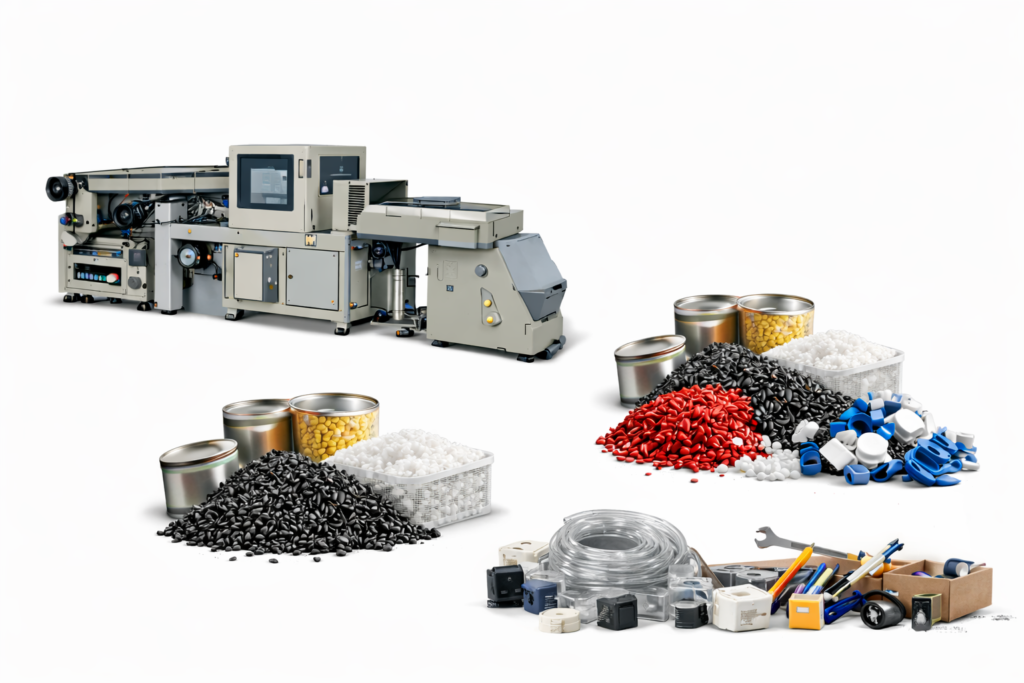 – Plastic materials & machines (cartons, films, bottles, pouches, etc.)